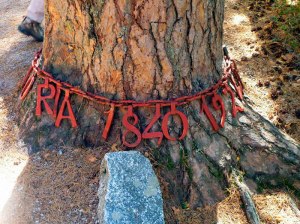 Quien haya andado un poco por la Sierra de Guadarrama alguna vez habrá paseado cerca del pino de la cadena y se habrá preguntado por su origen. Hoy he pasado a su vera con la bicicleta, y para quien no conozca su historia recordaré que en el año 1924 aquí mismo le dieron la noticia de la muerte de su padre a un miembro de la Institución Libre de Enseñanza, que como sabéis, gustaban de recorrer esos parajes, y en su recuerdo ciñó con una cadena el pino bajo el que estaba descansando. Como el pino iba a ser cortado, lo tuvo que comprar, y desde entonces los forestales van añadiendo eslabones según crece su diámetro.