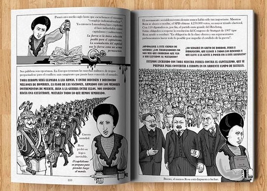 Además, la autora y las traductoras del libro al español, organizaron una tertulia en torno a este proyecto, en la librería La Central. Destaco la inmensa labor de búsqueda bibliográfica y la capacidad de la autora de sintetizarla en las líneas más destacadas, la habilidad para mezclar la vida pública y más política de Rosa Luxemburgo con su trama vital más íntima, y el acierto de las ilustraciones, que saben captar la atención y destacar lo esencial, que impactan en los momentos más dramáticos, pero también nos emocionan con los episodios más cotidianos.
